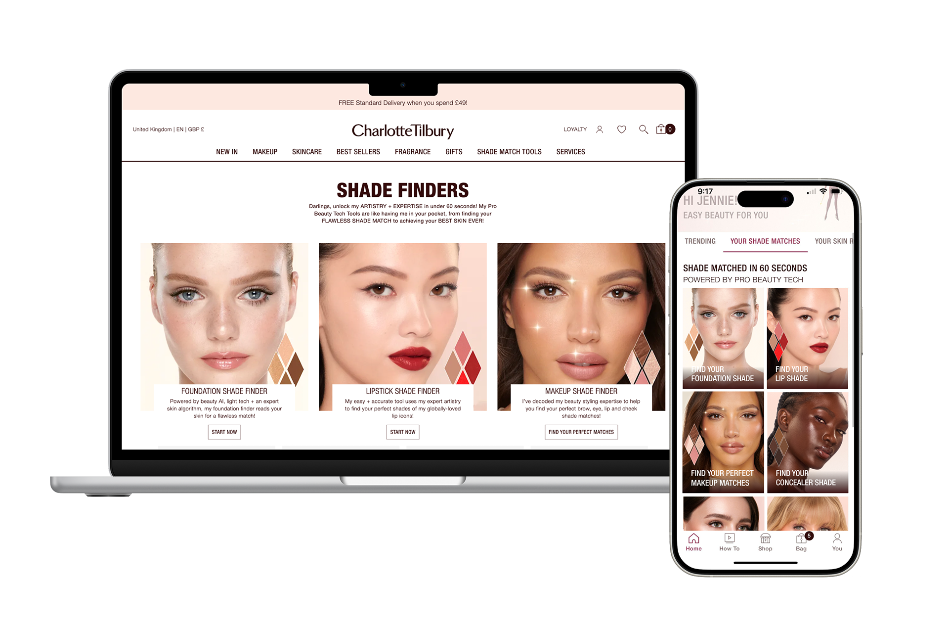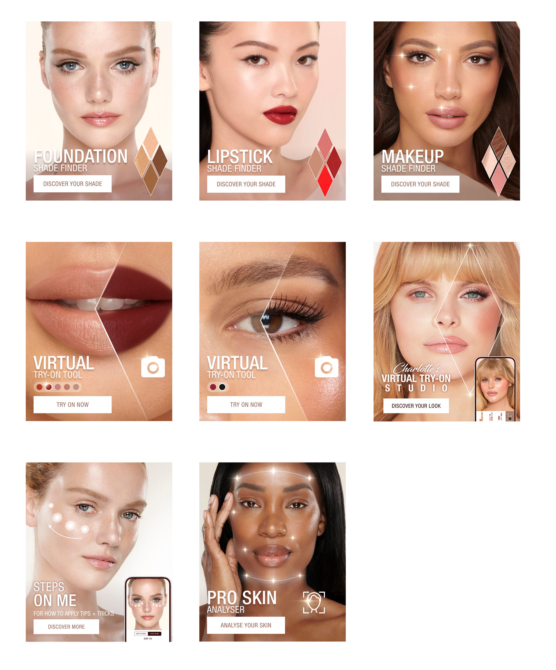 Charlotte Tilbury’s Pro Beauty Tech vertical is a premium extension of the brand: tools, experiences, and interactive beauty-technology offerings. The refresh aimed to produce a unified visual treatment for this vertical, so that the set of tools would feel like a family (cohesive) but also be able to stand independently (modular) depending on context.